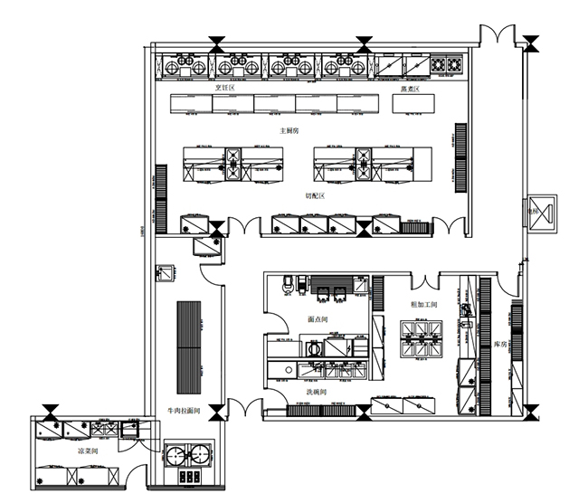 1.与一般通用厨房不同的考虑,例如,一些酒店、大食堂把明档、开放式厨房、风味小吃设在餐厅,增加了服务项目,也增加了厨房面积。