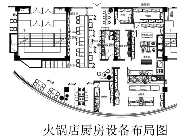 首先,我们划分火锅店厨房的区域。火锅店的厨房一般可以分为三个部分,原料的接收、贮藏和加工区域汤、烹饪点的区域原料、洗涤、餐具区域等。