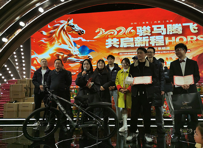 随着舞台上主持人的宣布,年会正式开始。按照惯例,主持人介绍了公司最近一年的工作情况以及取得成就。2025年,虽然充满挑战,但是,在全公司同仁的共同努力之下,还是取得了不错的成绩,让整个公司的各项业务能够正常开展,顺利的完成了各项任务,实现了既定目标。在主持人介绍完毕之后,公司董事长袁先生上台发表了新春祝词。